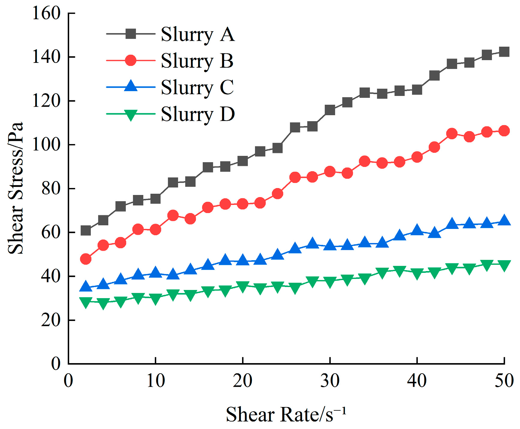 | D | τ = 0.38γ + 27.10 | 27.10 | 0.38 | 0.982 |