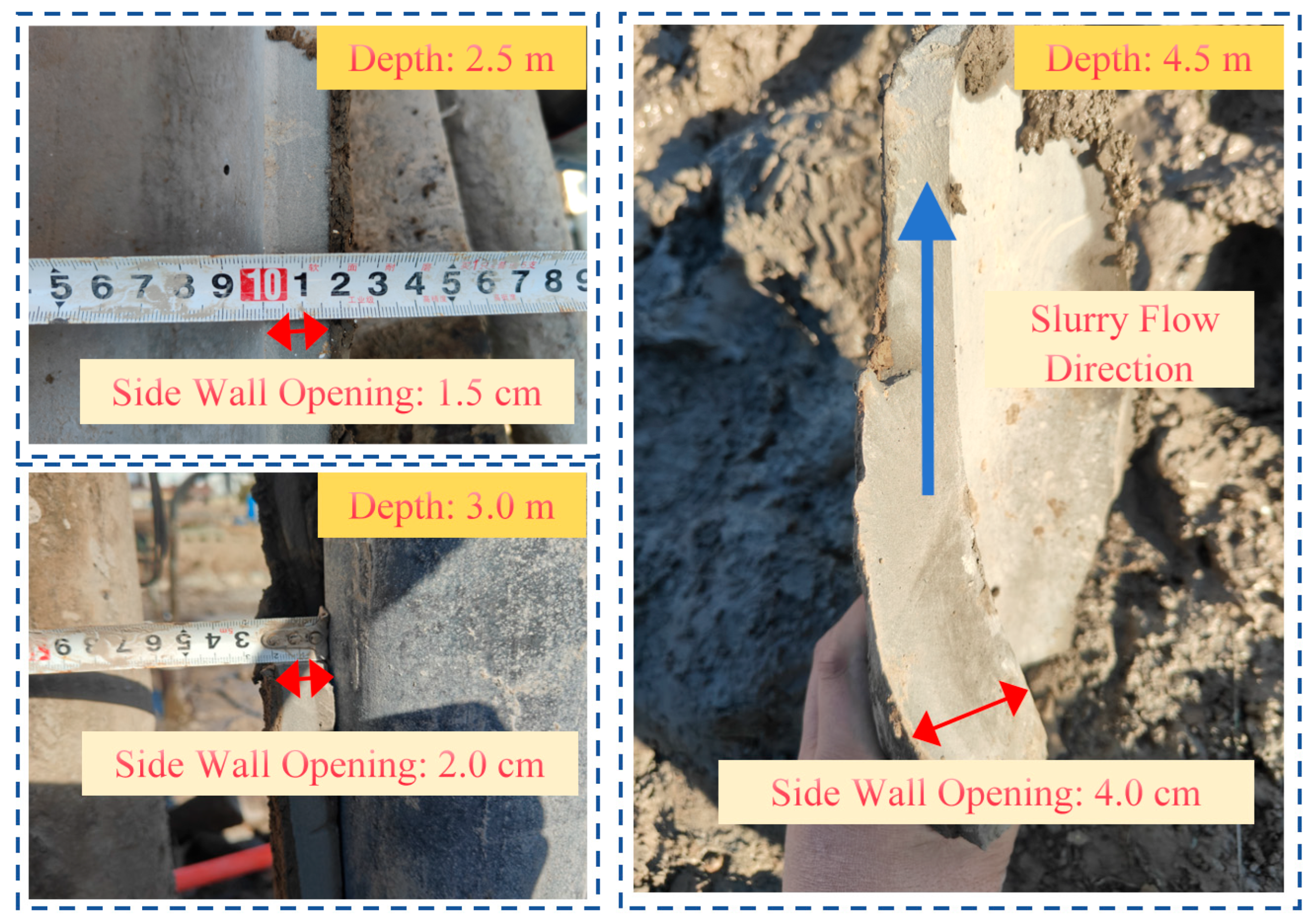 - Zhang, G.J.; Liang, J.W.; Yang, D.S.; Pan, Y.; Peng, C.L. Mechanism of stemming slurry materials for pulsating grouting in soft strata. Chin. J. Geotech. Eng. 2016, 38, 210–218. (In Chinese) [Google Scholar]