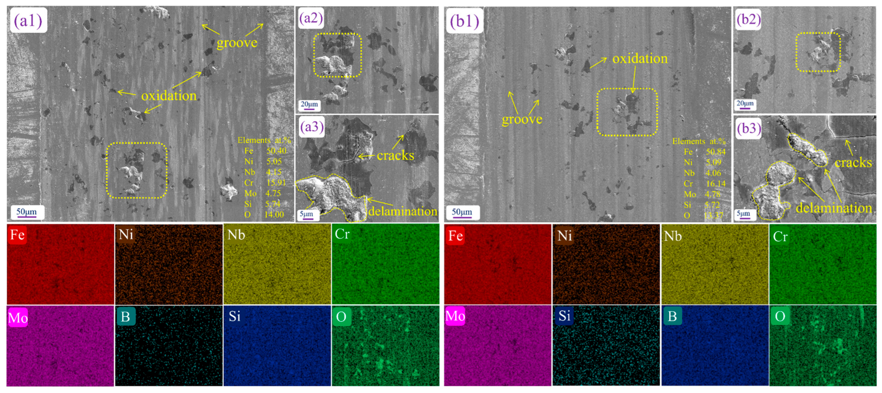 - By interpolatively expanding the original process parameter space and implementing a two-stage screening strategy, 98 high-potential process parameter combinations were identified. Experimental validation confirmed that the optimal parameter set simultaneously achieved a hardness level exceeding the maximum value observed in the original experimental dataset and improved hardness uniformity, resulting in a 13.6% reduction in wear rate compared with the reference condition. These results verify the effectiveness, robustness, and practical feasibility of the proposed framework in advancing process-window optimization and enhancing the performance of HVAF-sprayed Fe-based amorphous coatings.
