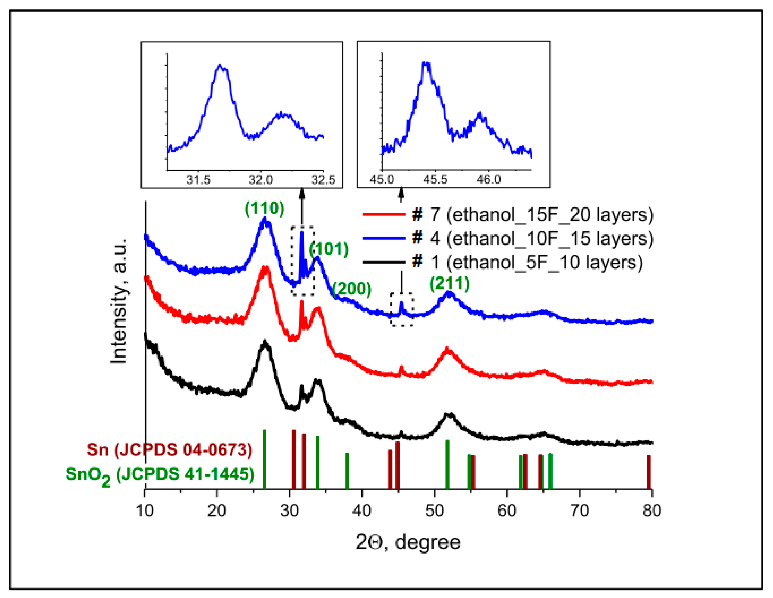 Chicago/Turabian StyleKovalenko, Anastasiya S., Anastasiya I. Kushakova, Anton M. Nikolaev, Nadezhda N. Gubanova, Vasilii A. Matveev, Ekaterina A. Bondar, Sergei V. Myakin, Oleg A. Zagrebelnyy, Alexandra G. Ivanova, and Olga A. Shilova. 2026. "Optimization of SnCl2:NH4F-Derived Sols for Preparation of Thin Transparent Conductive Crystallized SnO2 Films" Coatings 16, no. 2: 210. https://doi.org/10.3390/coatings16020210