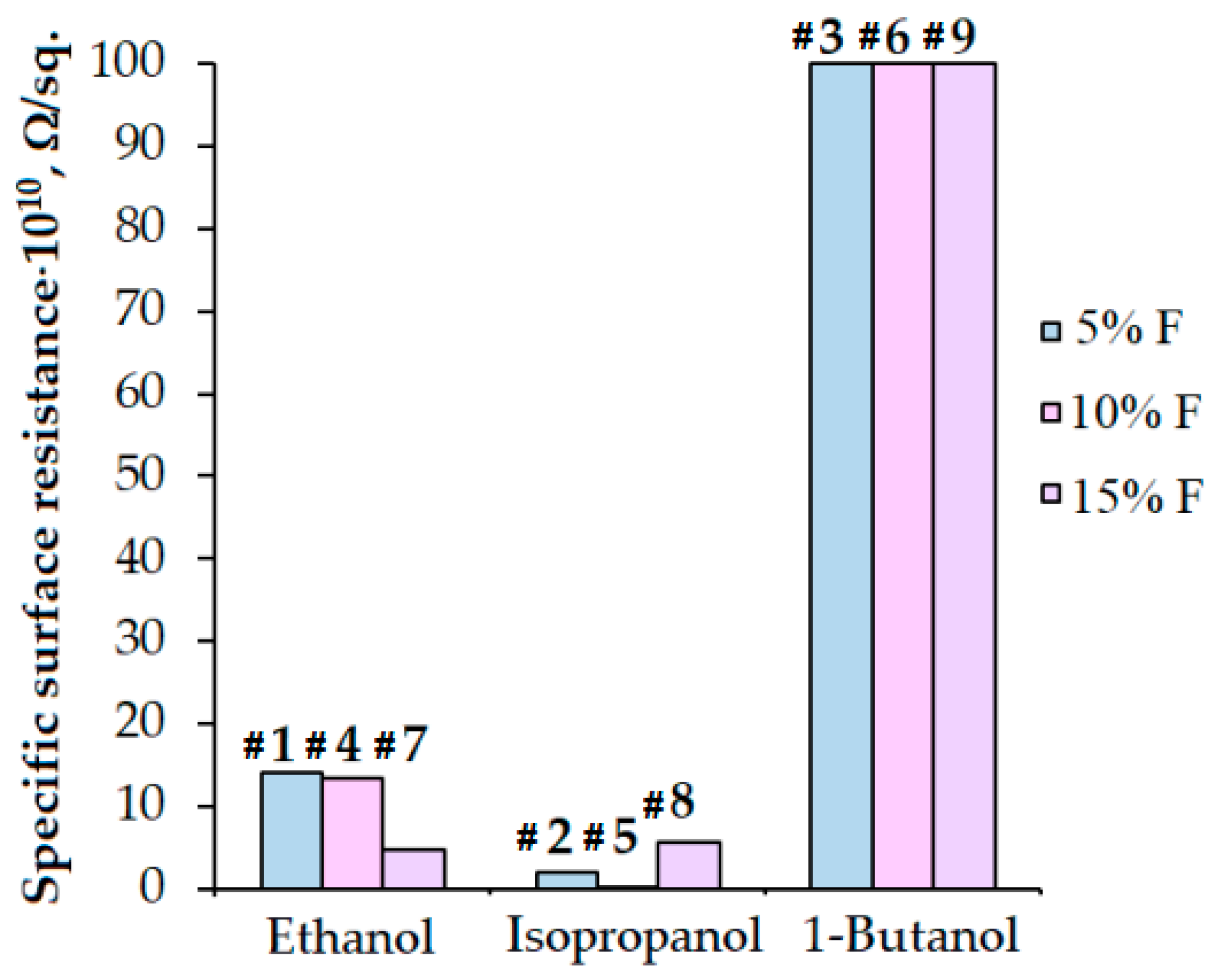 | Specific Surface Resistance, Ω/sq. | |||