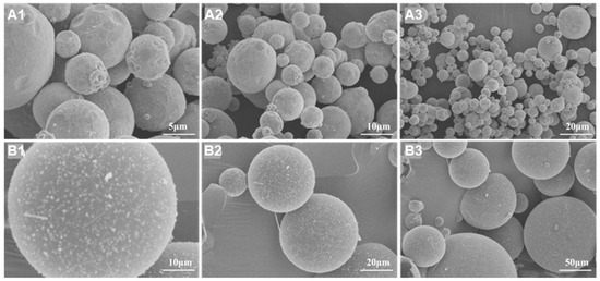 SEM images of (A1–A3) HGB and (B1–B3) zinc powder.