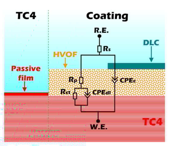 Equivalent circuits of the TC4 substrate, HVOF, and Duplex coatings.