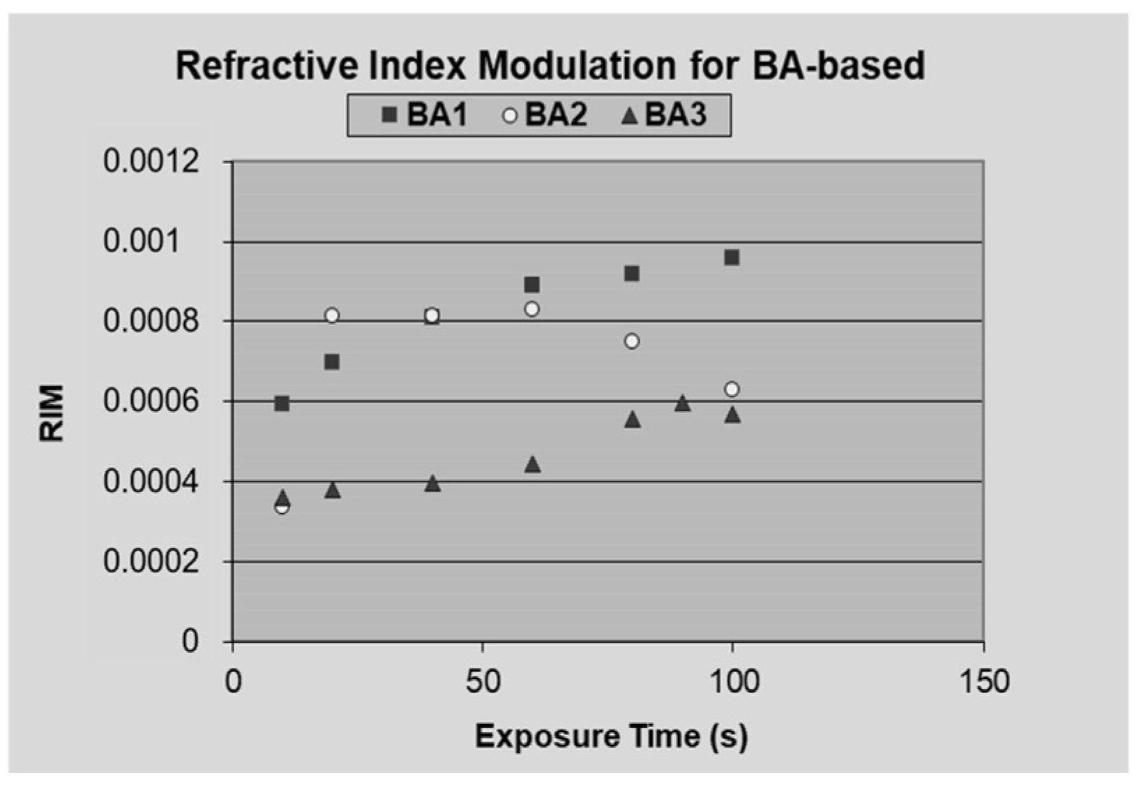 2.1.1. Composition of the BA-Based Holographic Photopolymer