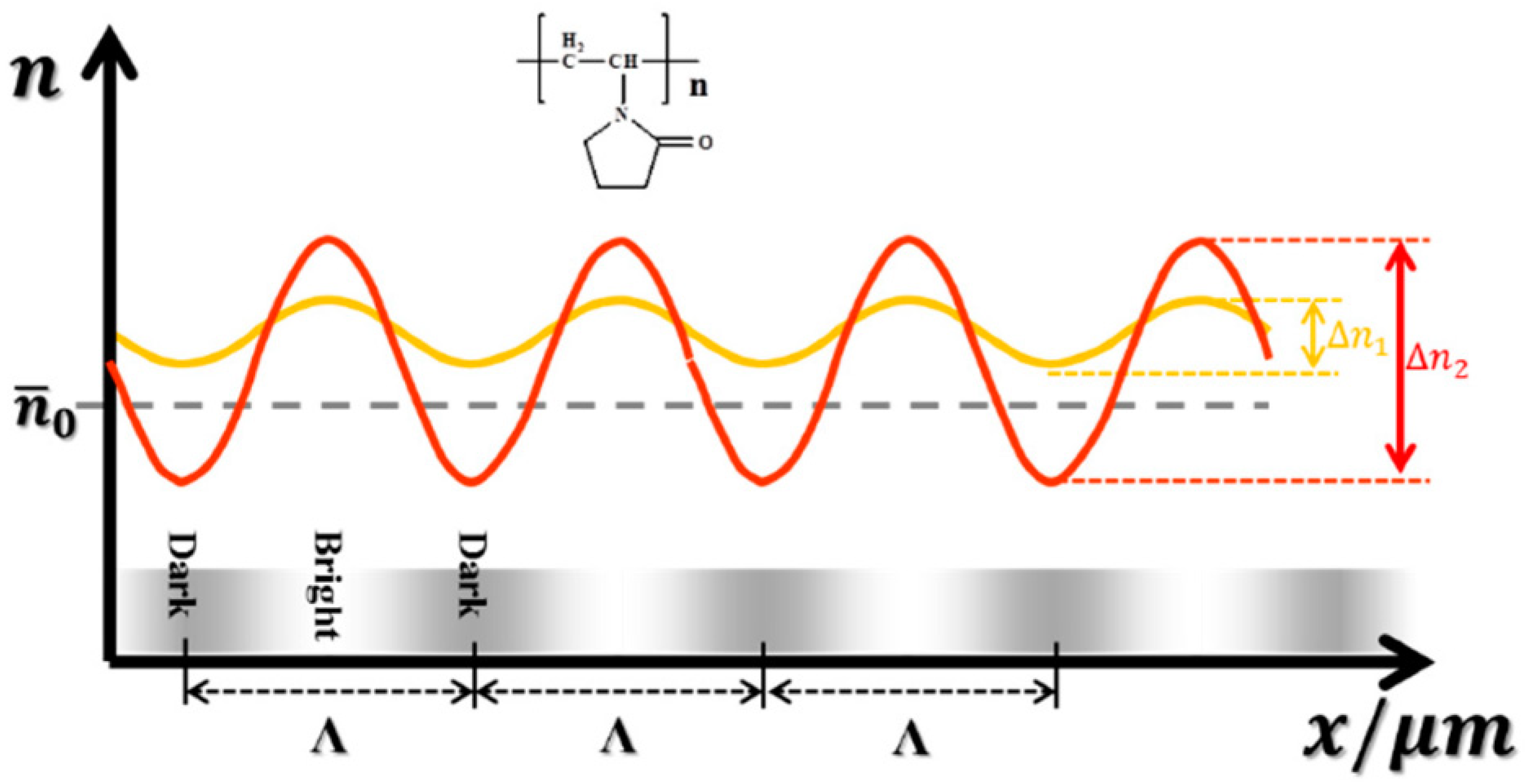 - Pi, H.; Li, W.; Shi, Z.; Chen, H.; Jiang, X. Effect of Glycerol on an N-Vinylpyrrolidone-Based Photopolymer for Transmission Holography. Polymers 2021, 13, 1754. [Google Scholar] [CrossRef]