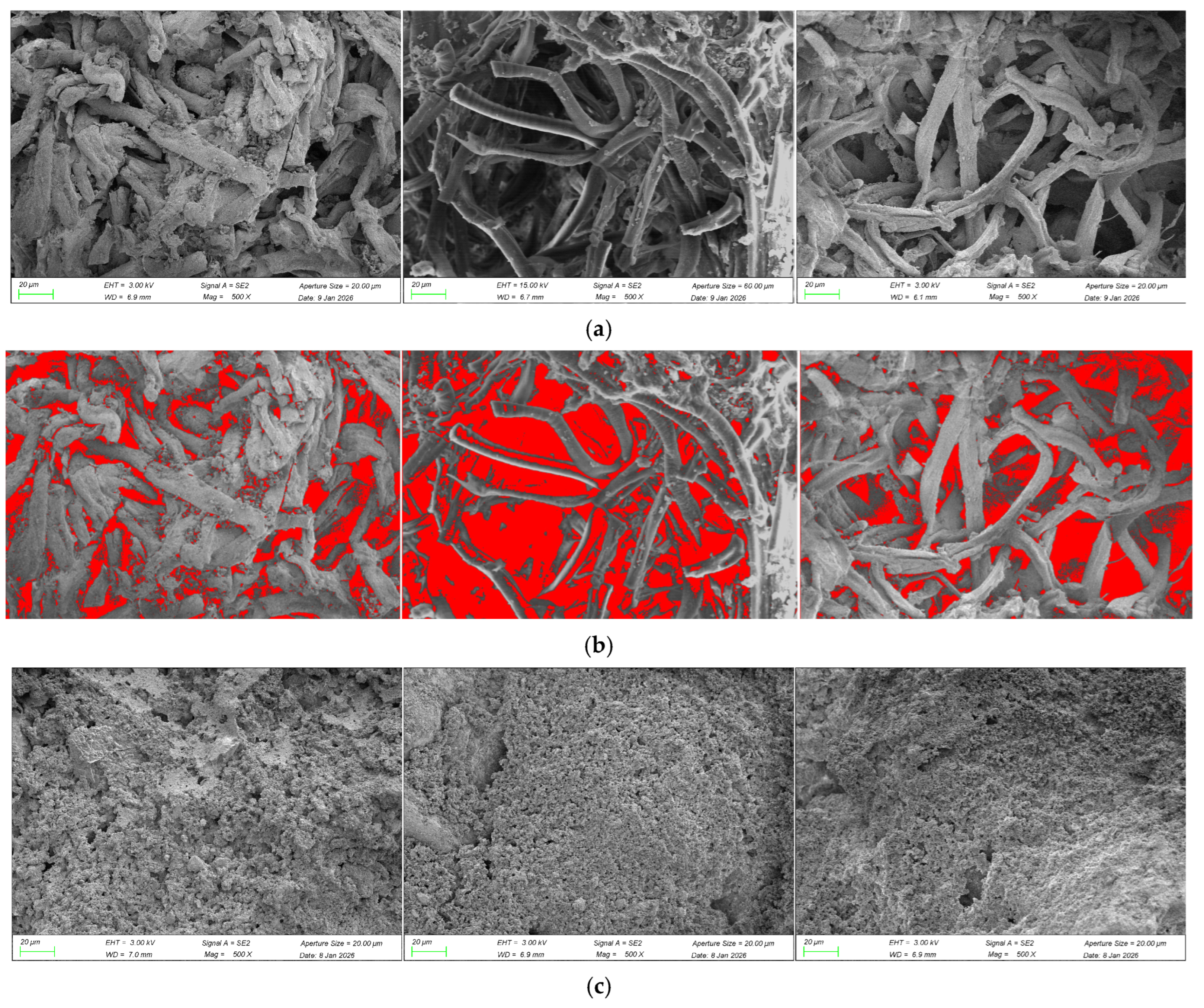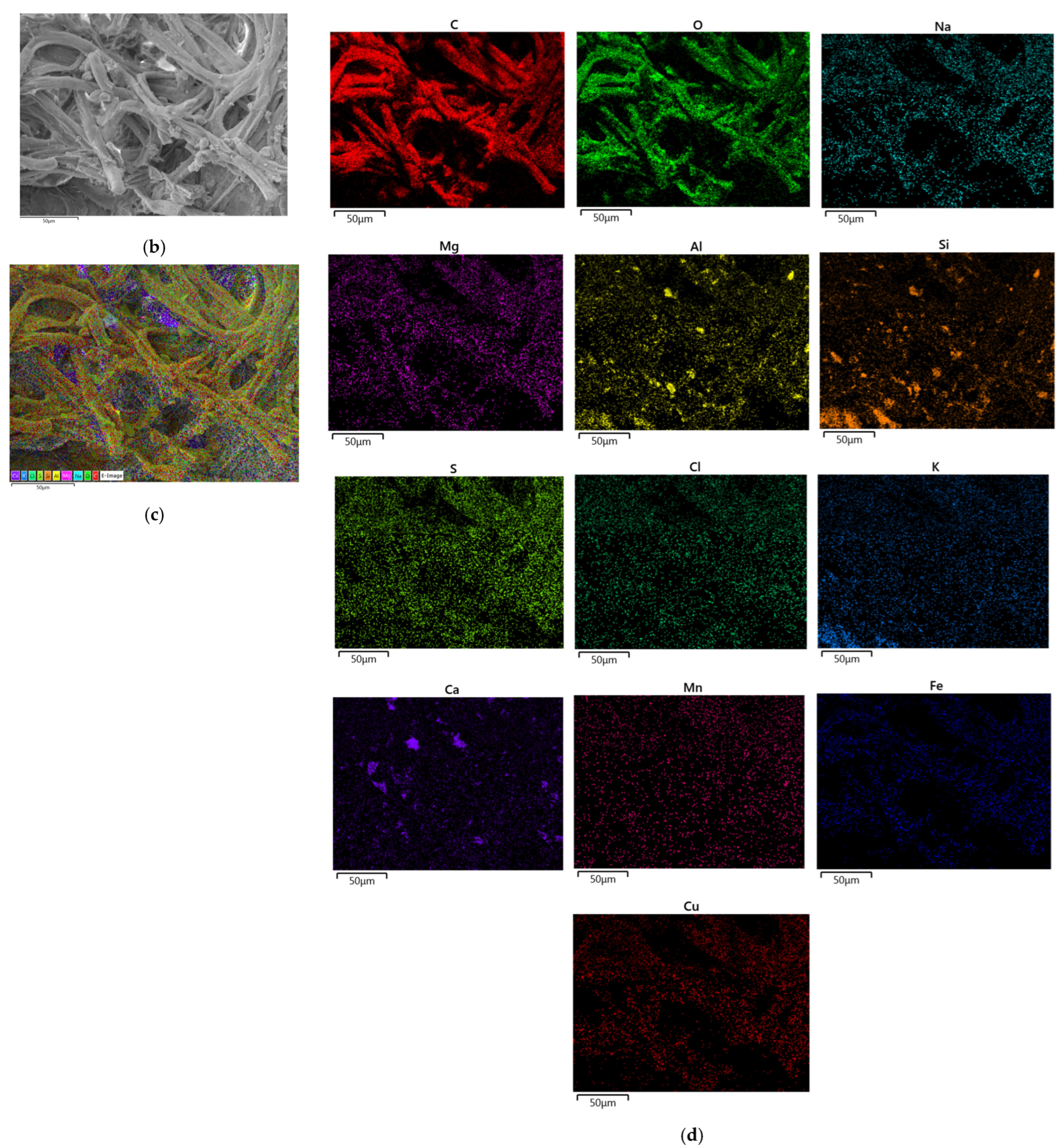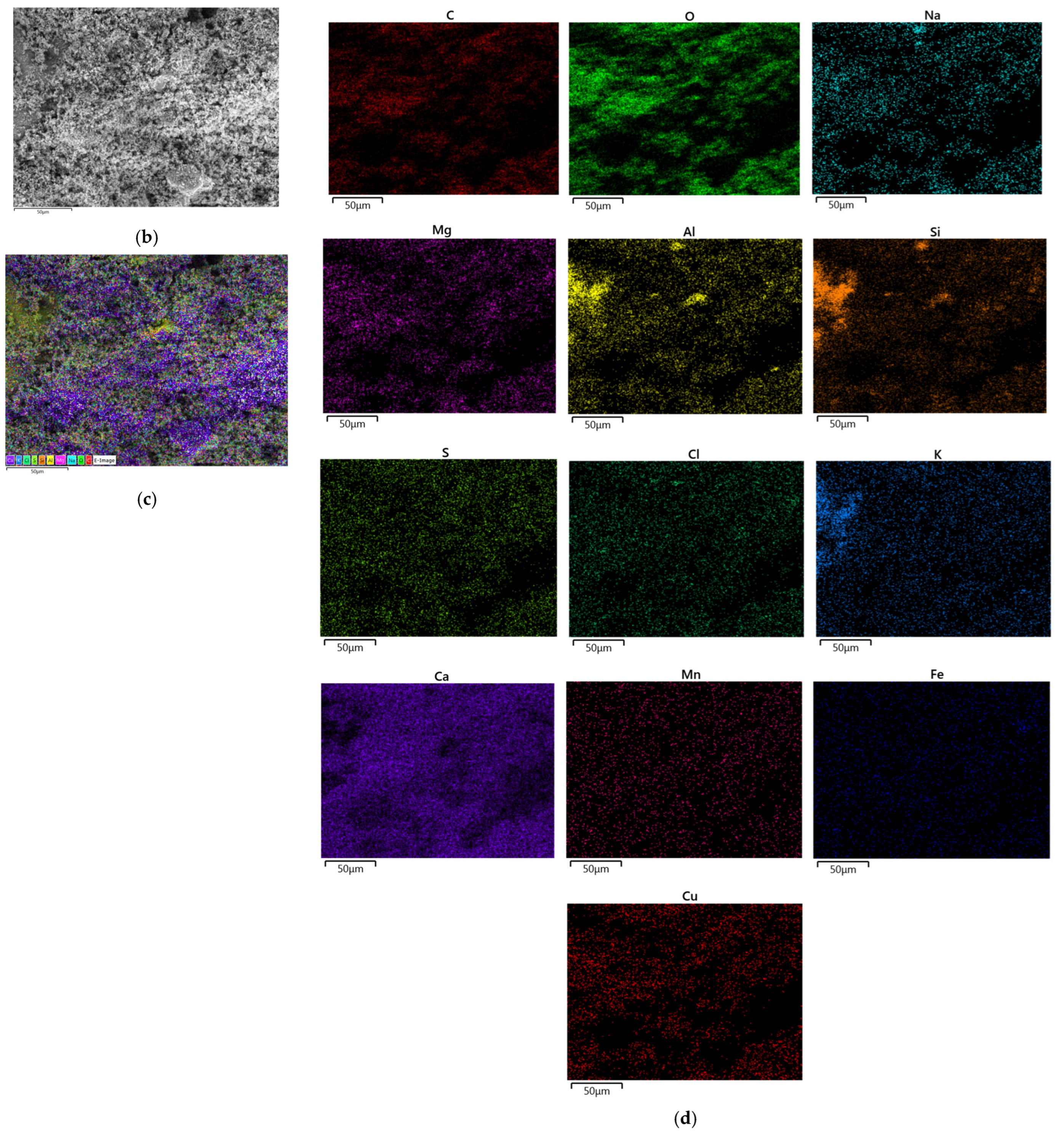 2.4.3. SEM–EDS Experimental Steps