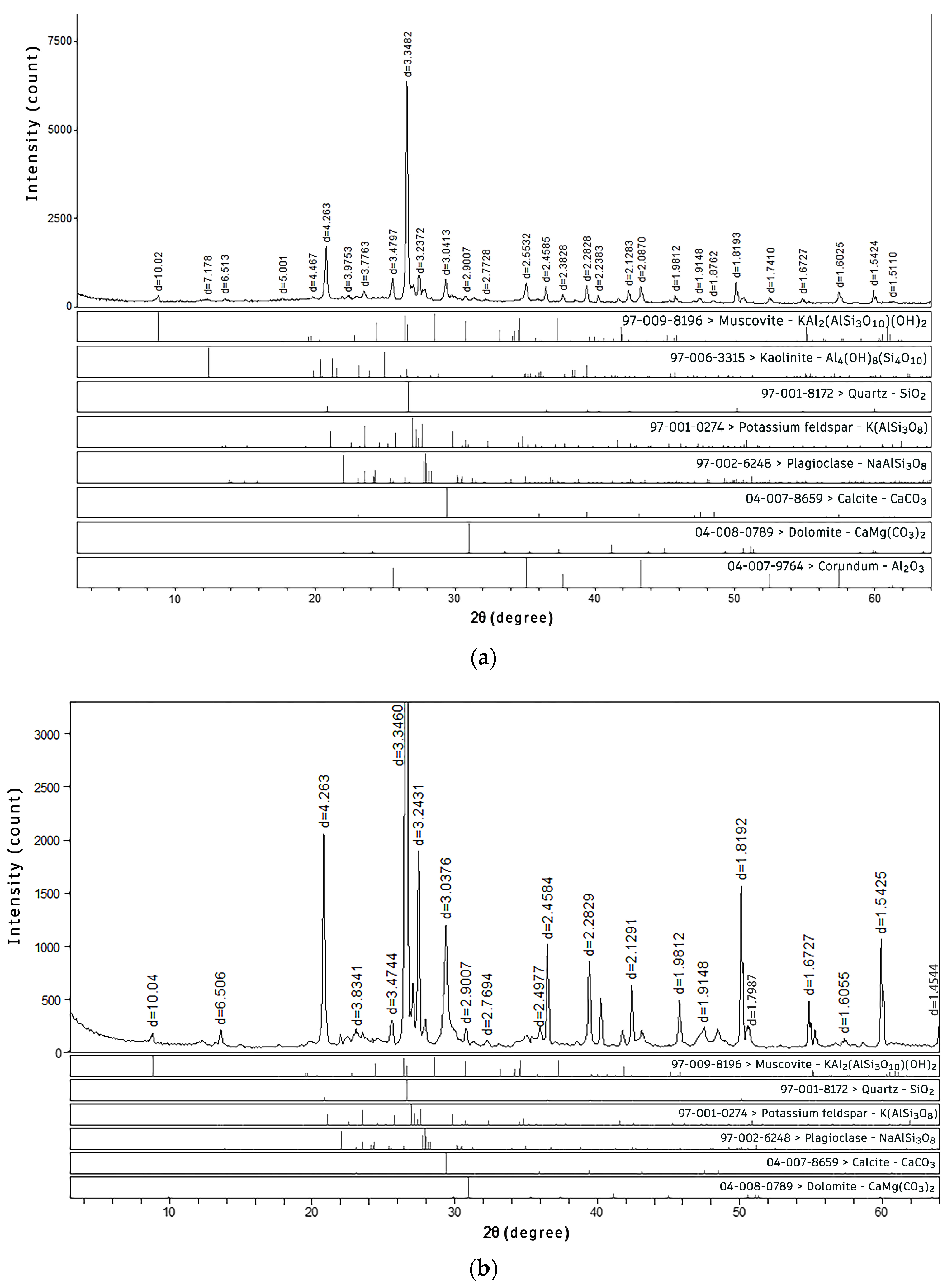 | No. | Sample | Muscovite | Kaolinite | Quartz | Potassium Feldspar | Plagioclase | Calcite | Dolomite | Amorphous Substance |
