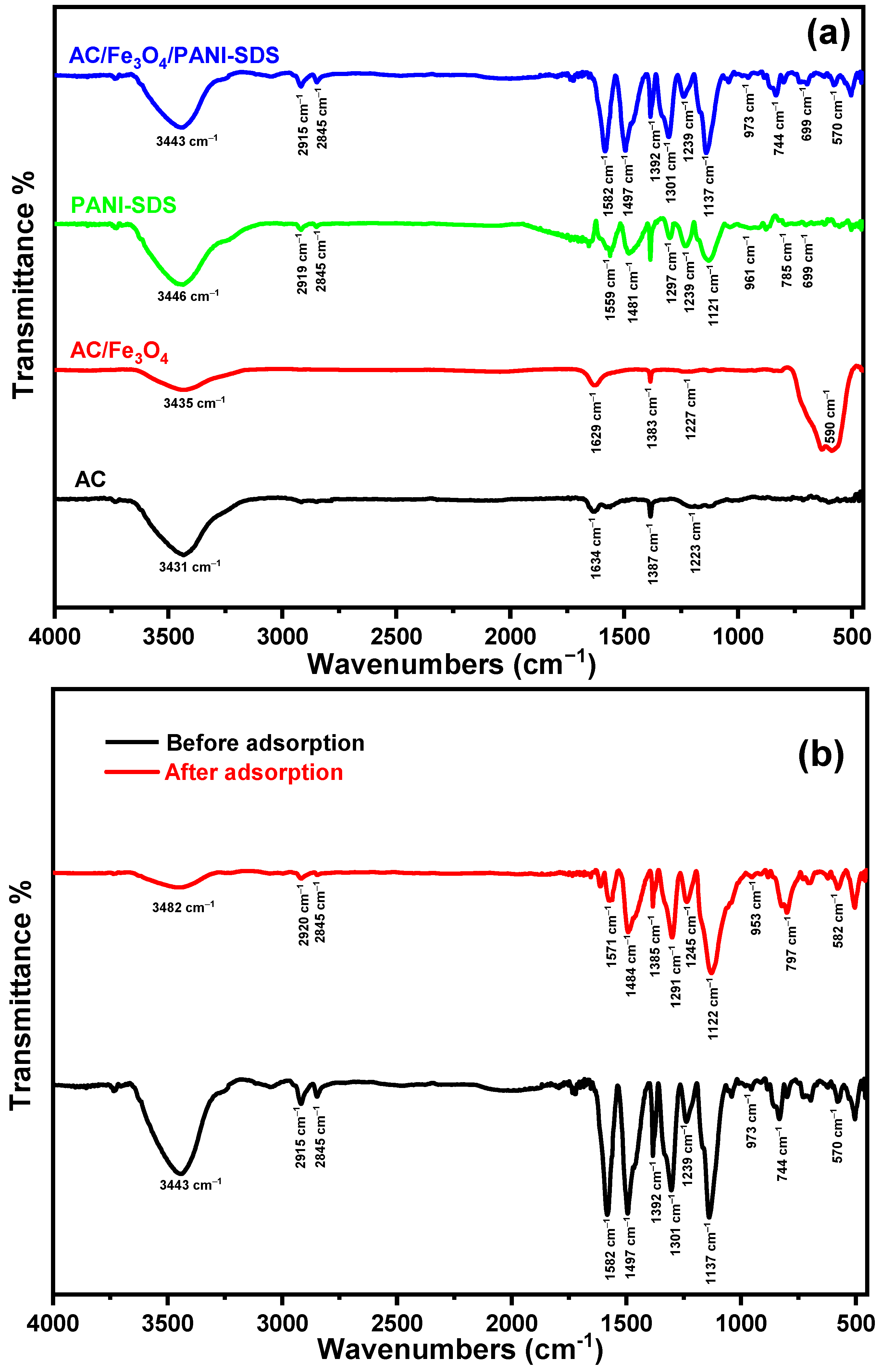 | Sample | AC | AC/Fe3O4 | AC/Fe3O4/PANI-SDS |