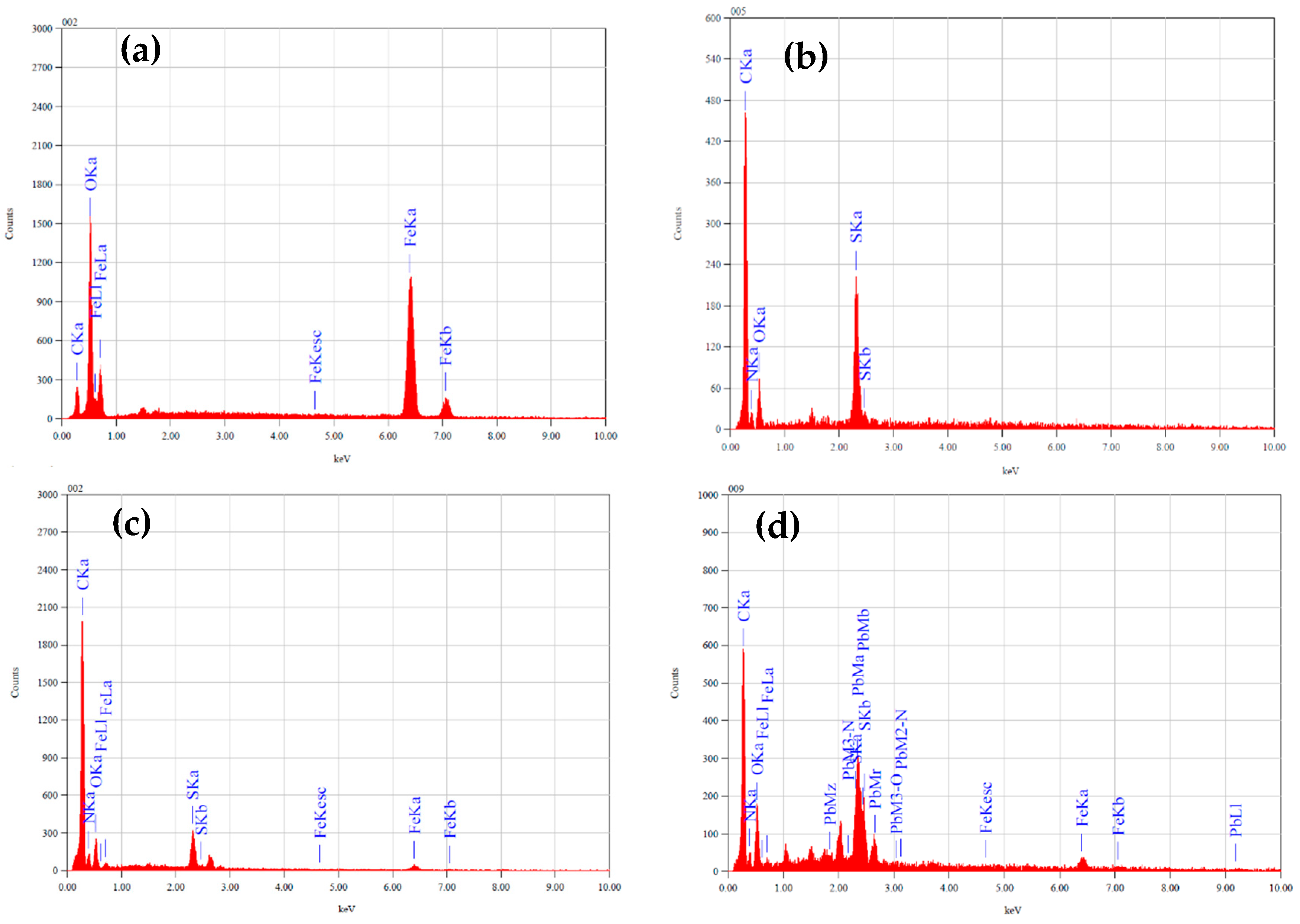 | Sample | Fe (%) | O (%) | N (%) | C (%) | S (%) | Pb (%) |