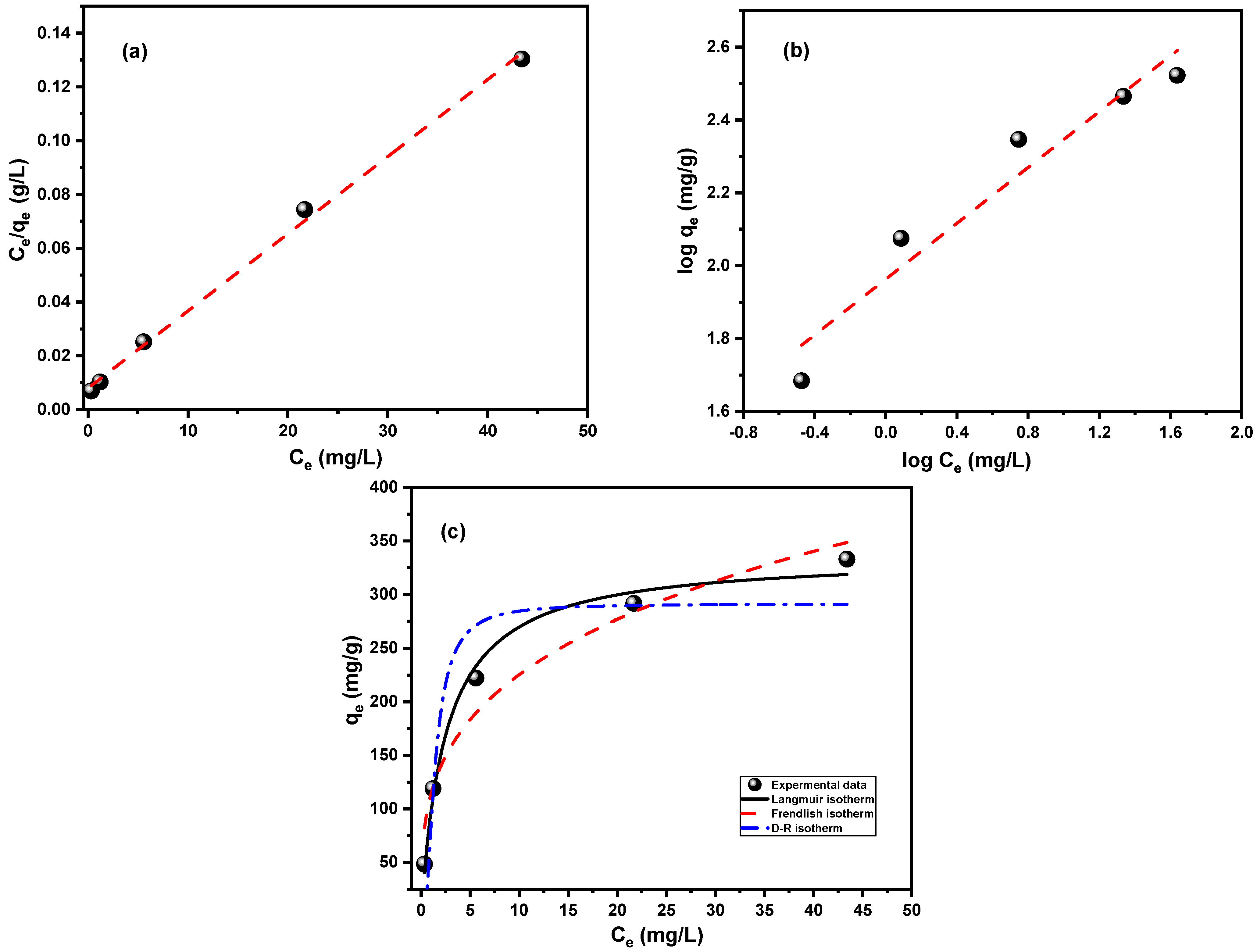 | Freundlich | Linear form | 1/n | 0.383 |