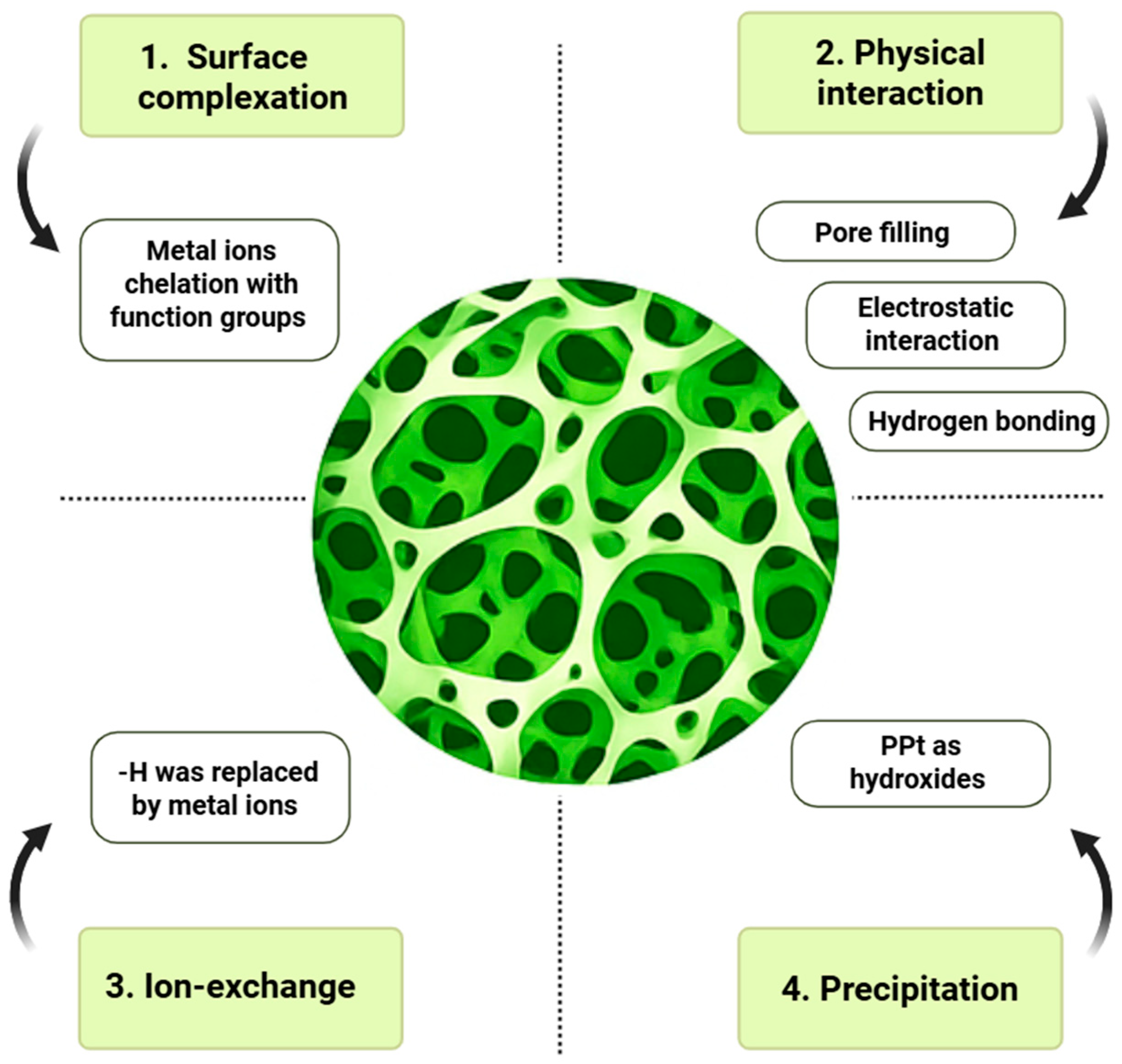 - Singh, S.; Kapoor, D.; Khasnabis, S.; Singh, J.; Ramamurthy, P.C. Mechanism and kinetics of adsorption and removal of heavy metals from wastewater using nanomaterials. Environ. Chem. Lett. 2021, 19, 2351–2381. [Google Scholar] [CrossRef]
