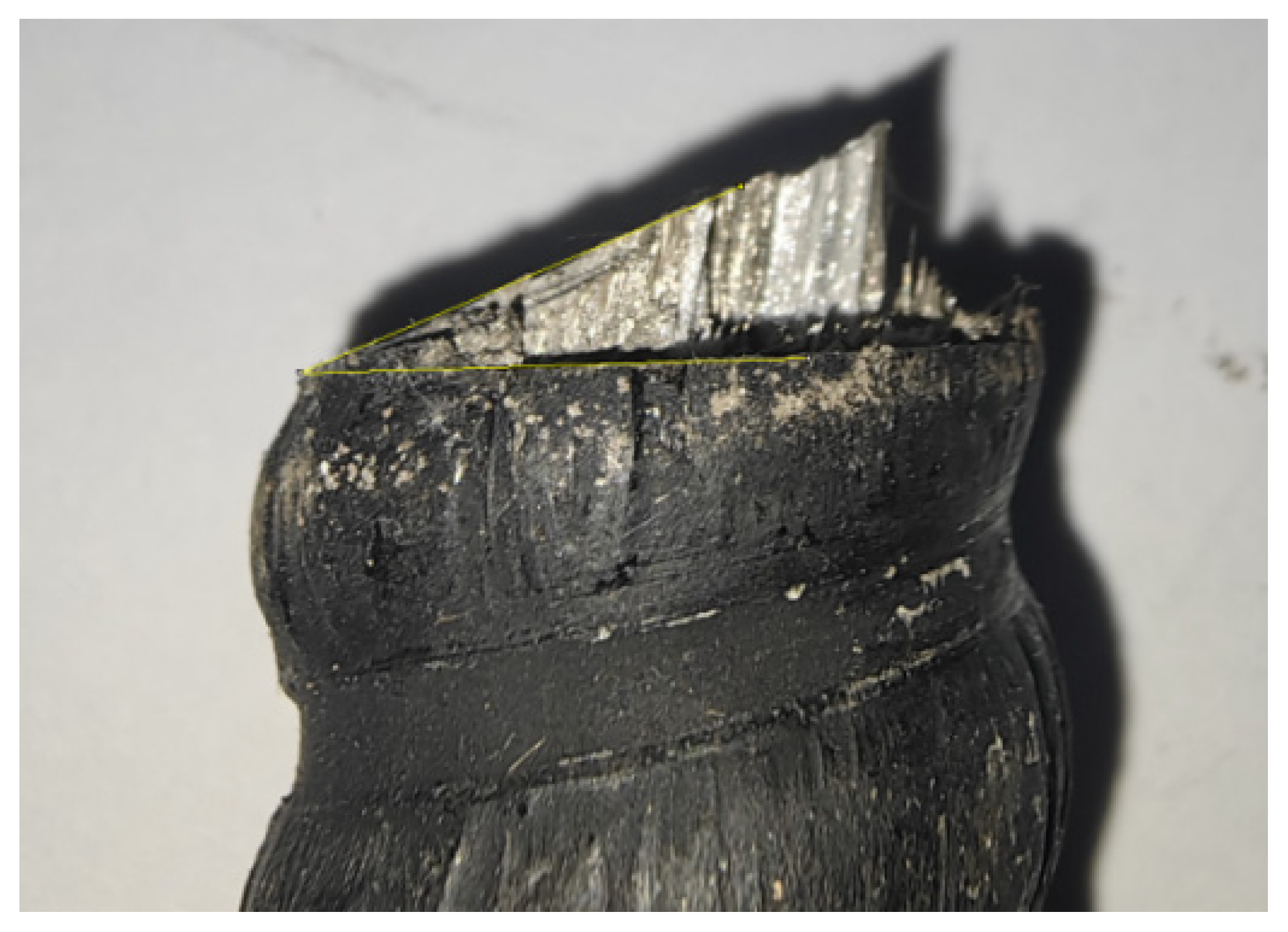 2.3. Macroscopic Fracture Surface Analysis