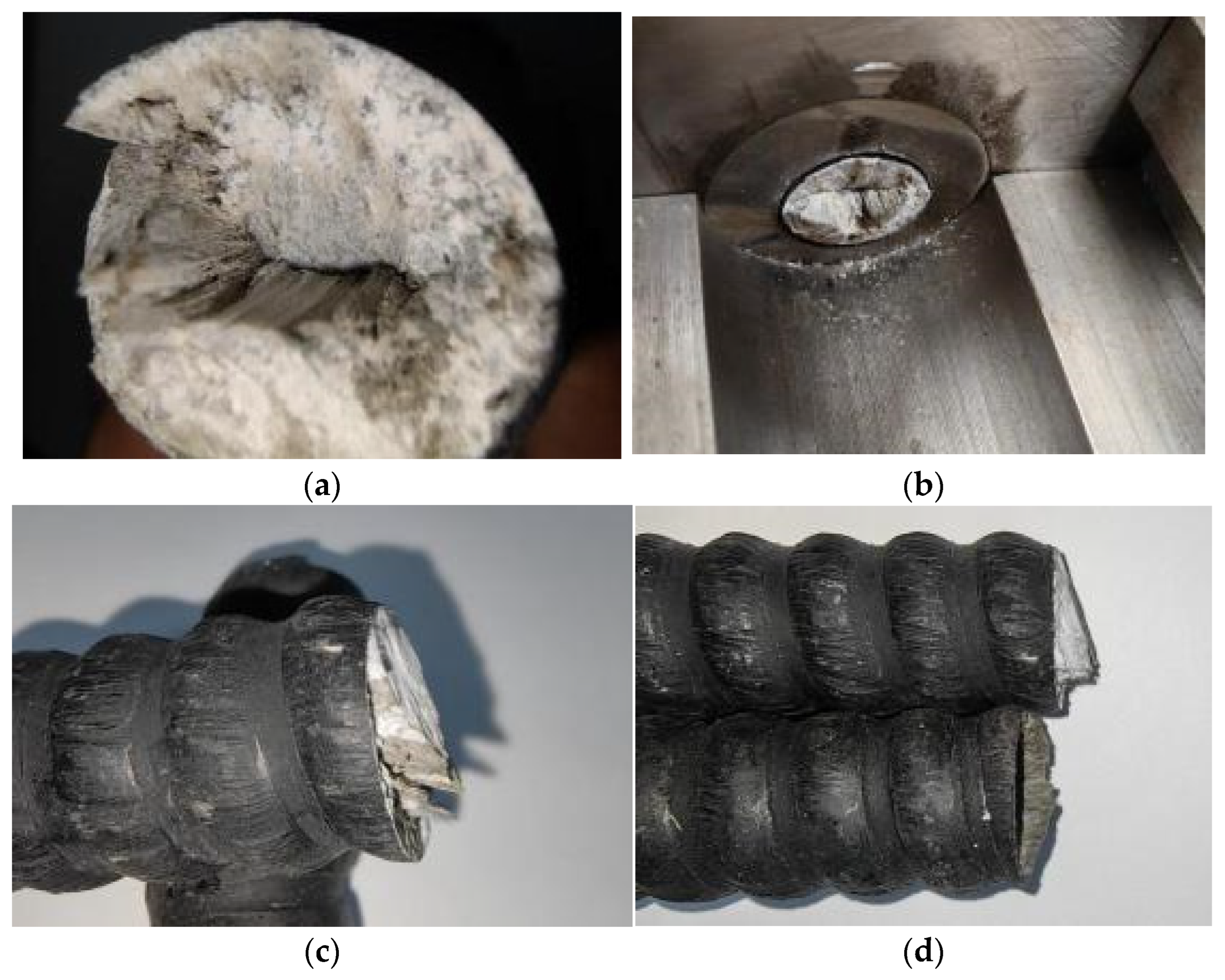 - Oblique tensile-shear stage: extensive fiber pull-out forming a “brush-like” morphology (Figure 3c,d).