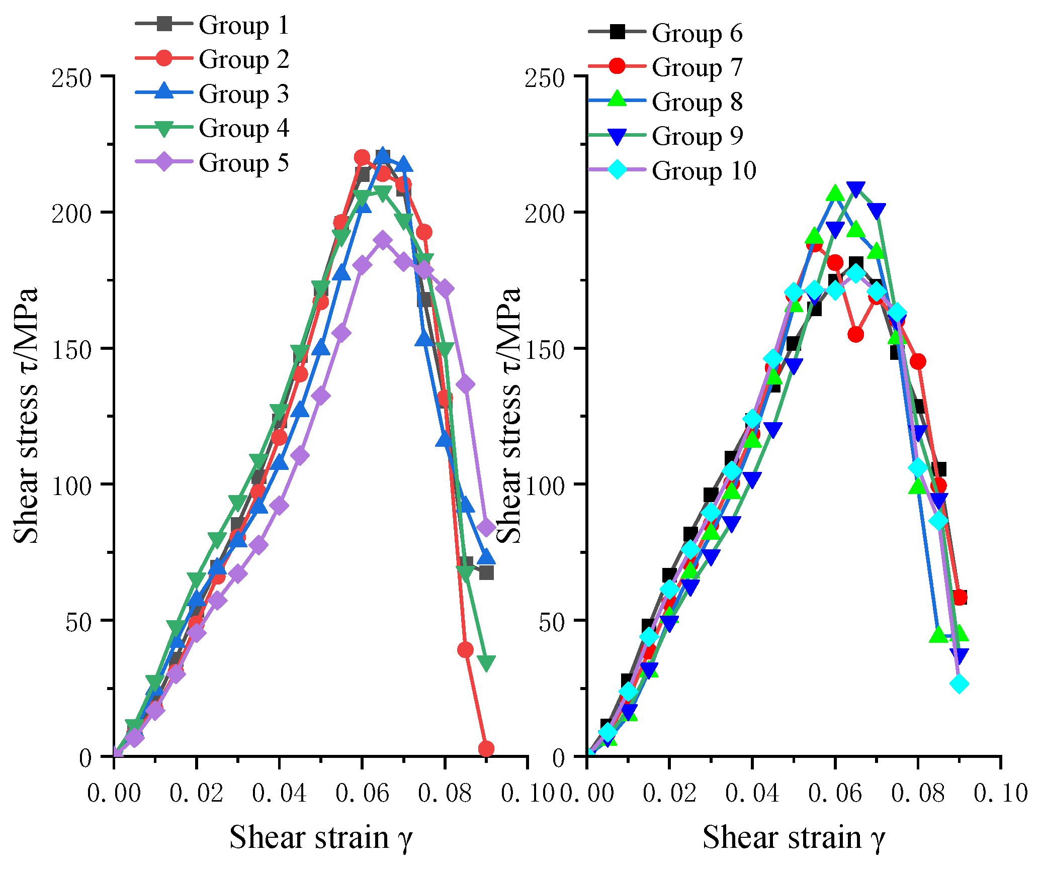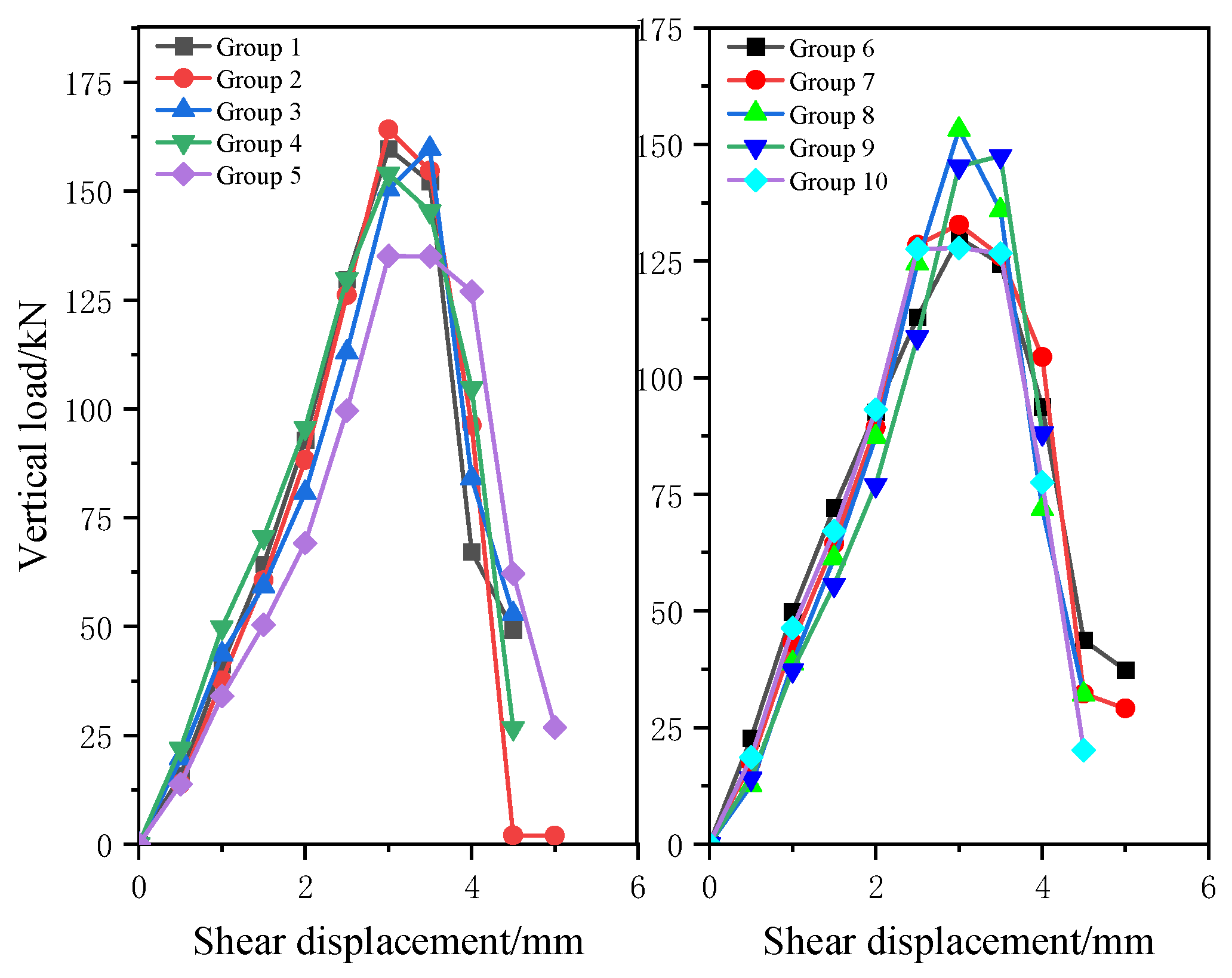 | Test No. | Peak Load Pmax/kN | Peak Displacement Δmax/mm | Initial Shear Modulus G0/GPa | Shear Strength τmax/MPa |