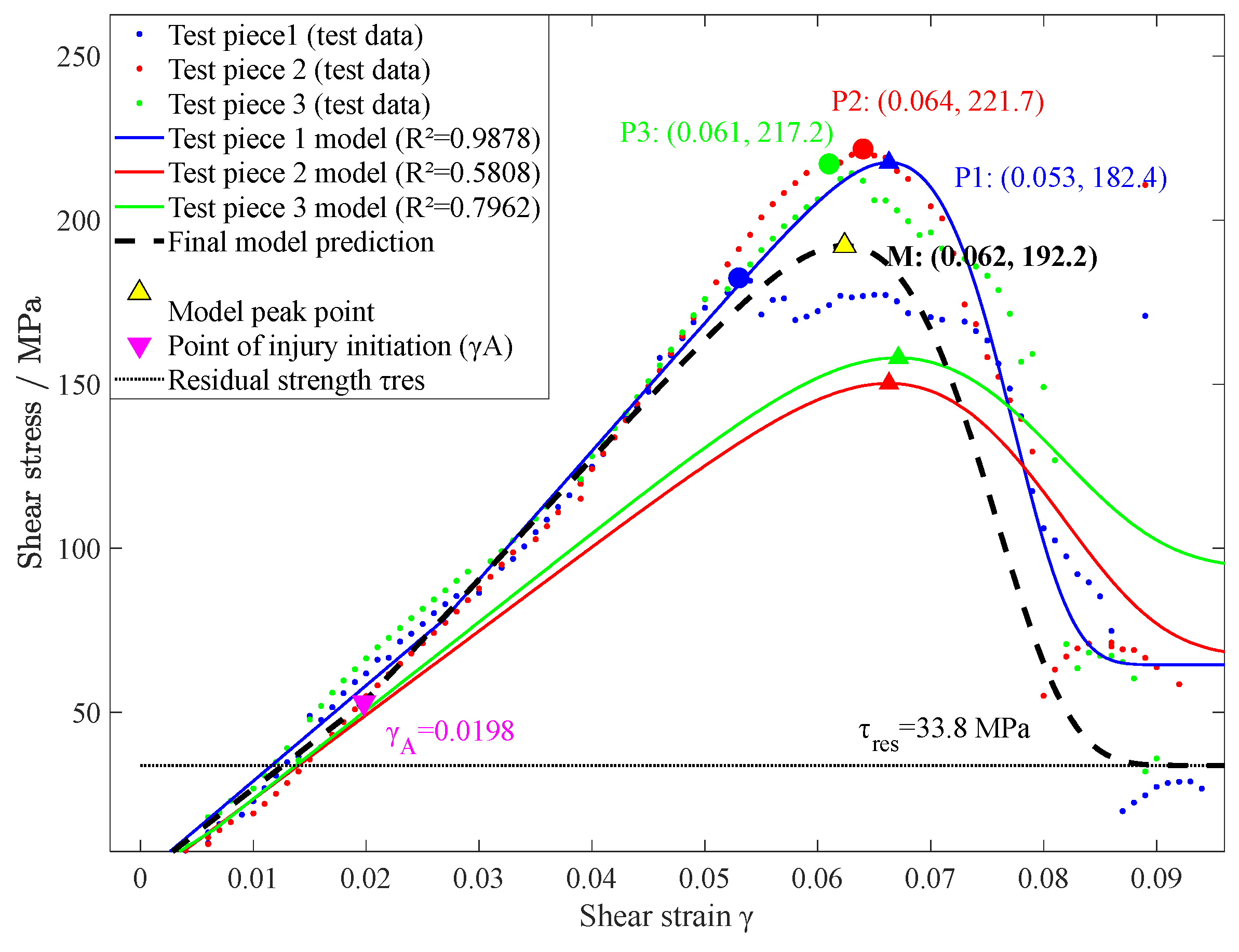 | Model | Predict τmax (MPa) | Experiment τmax (MPa) | Relative Deviation (%) |