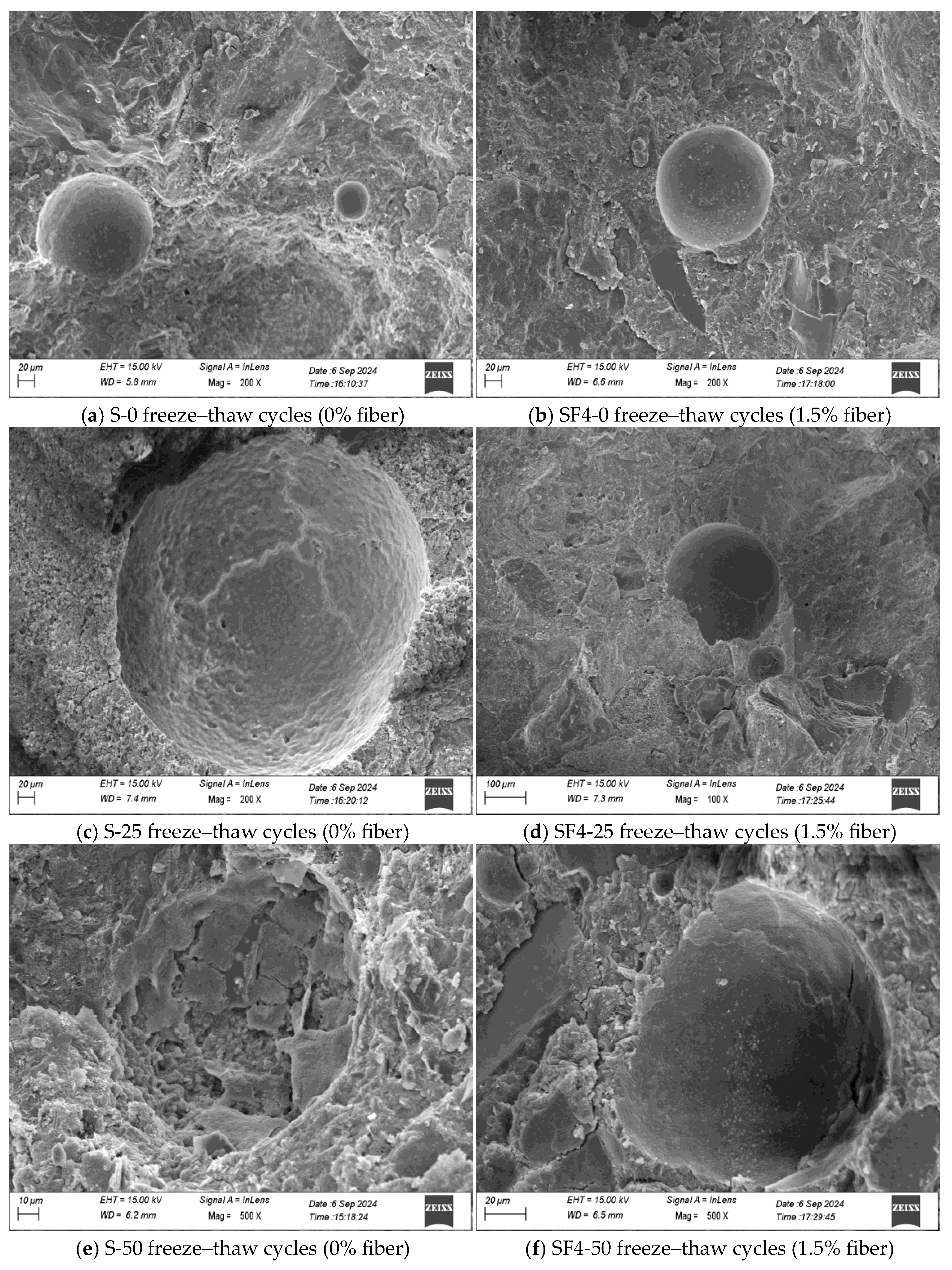 5] investigated the influence of silica fume content on the frost resistance and mechanical properties of concrete based on the rapid freezing method, ultimately concluding that incorporating silica fume can effectively improve the frost resistance of concrete. Zhou et al. [