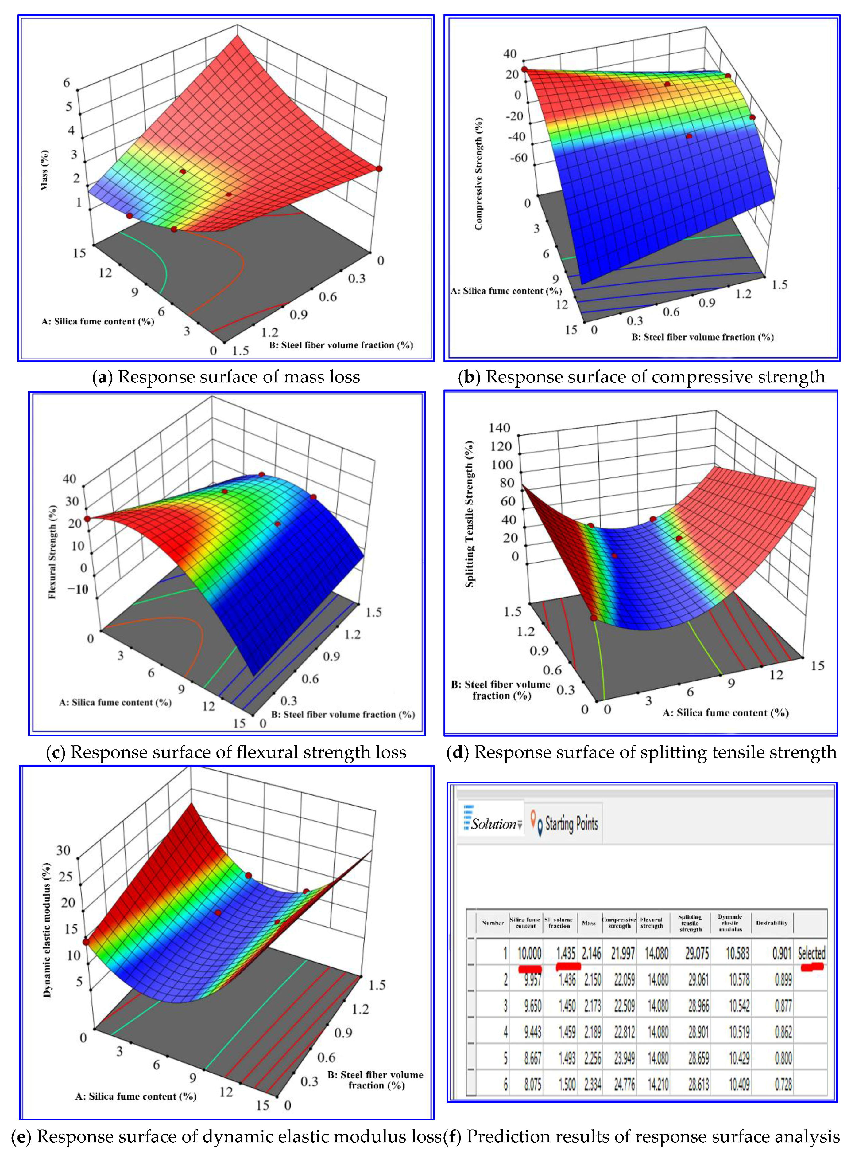 3] explored the influence of silica fume content on the compressive strength and mass loss of concrete under coupled wet–dry and freeze–thaw conditions. They found that increasing silica fume content effectively reduced the total porosity and average pore diameter, decreased the number of harmful pores larger than 100 nm, and increased the fractal dimension of pores. This reflected an enhancement in pore structure complexity and compactness. Xuan et al. [
