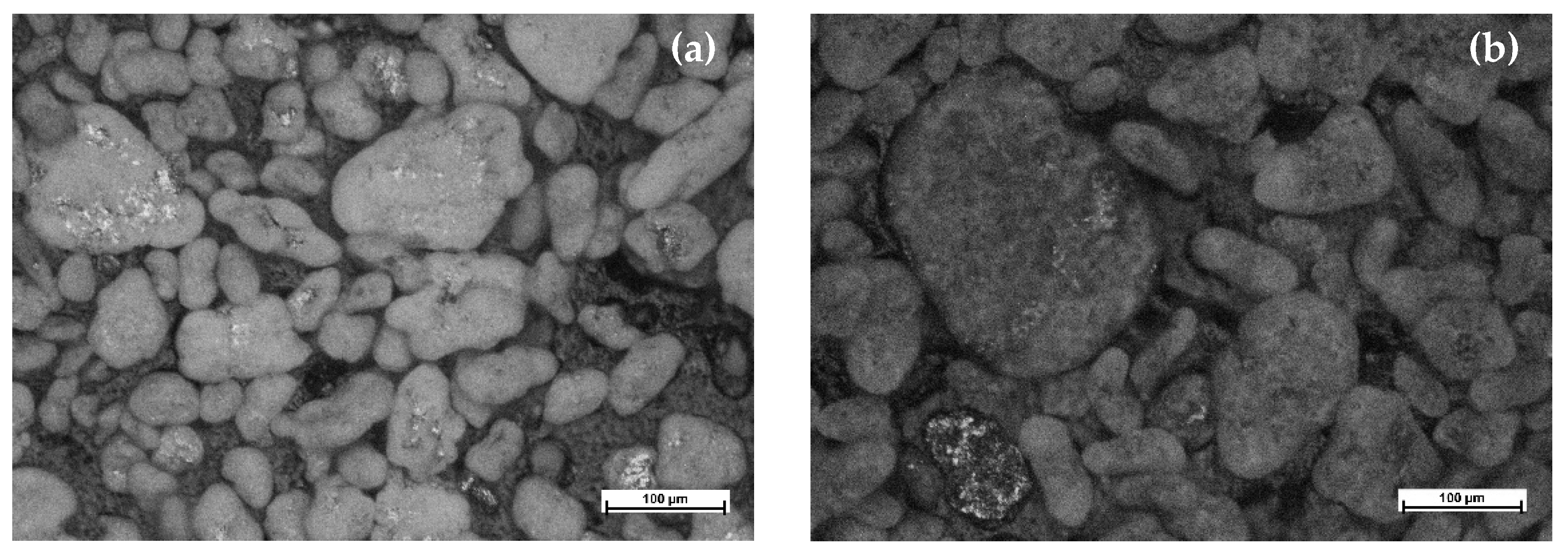 - Birčáková, Z.; Onderko, F.; Dobák, S.; Kollár, P.; Füzer, J.; Bureš, R.; Fáberová, M.; Weidenfeller, B.; Bednarčík, J.; Jakubčin, M.; et al. Eco friendly soft magnetic composites of iron coated by sintered ferrite via mechanofusion. J. Magn. Magn. Mater. 2022, 543, 168627. [Google Scholar] [CrossRef]