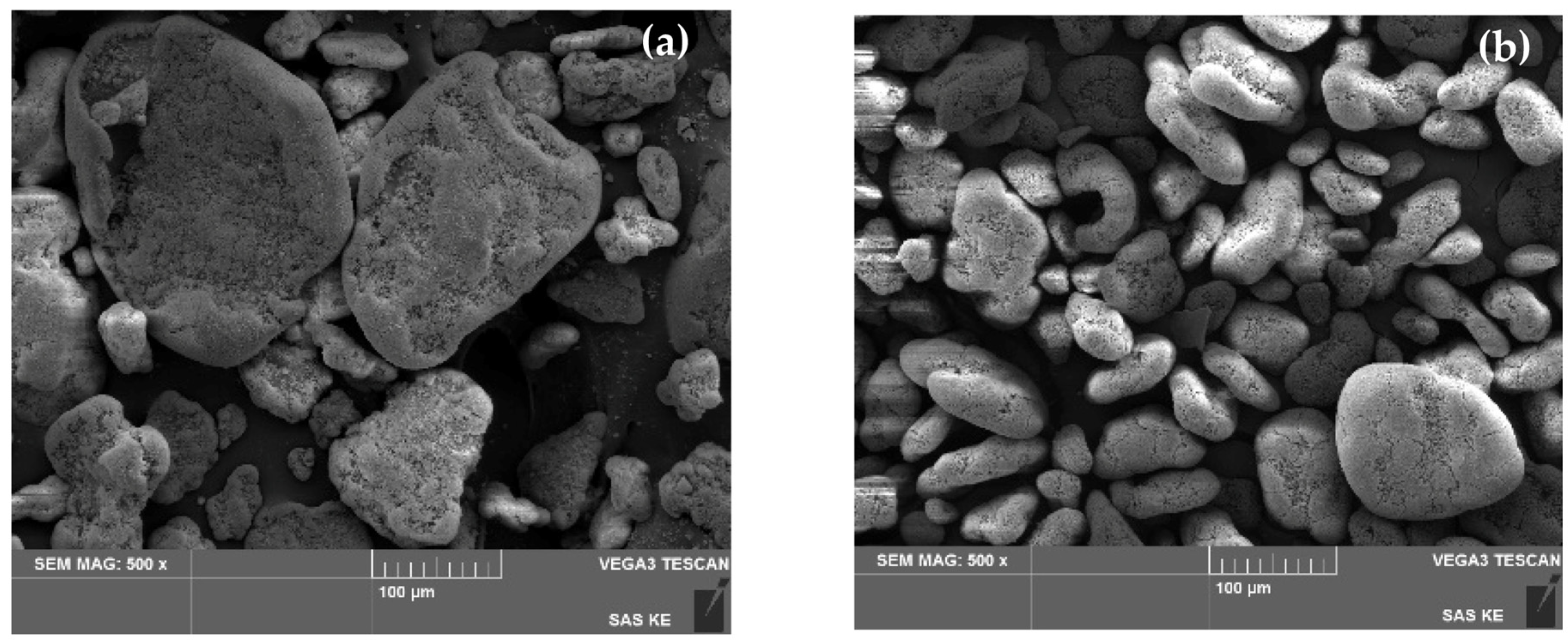 - Slovenský, P.; Kollár, P.; Mei, N.; Jakubčin, M.; Zeleňáková, A.; Halama, M.; Odnevall Wallinder, I.; Hedberg, Y.S. Mechanical surface smoothing of micron-sized iron powder for improved silica coating performance as soft magnetic composites. Appl. Surf. Sci. 2020, 531, 147340. [Google Scholar] [CrossRef]