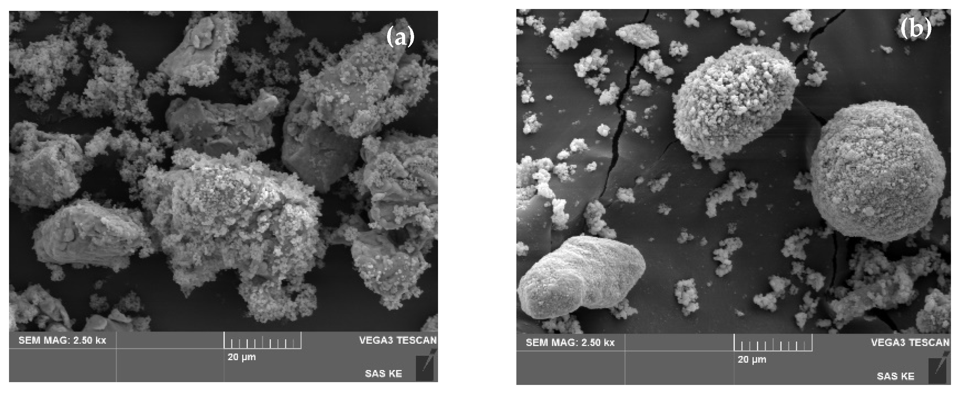 - Rudeichuk, T.; Olekšáková, D.; Maciaszek, R.; Matysiak, W.; Kollár, P. Exploring the Impact of Different Milling Parameters of Fe/SiO2 Composites on Their Structural and Magnetic Properties. Materials 2024, 17, 862. [Google Scholar] [CrossRef]