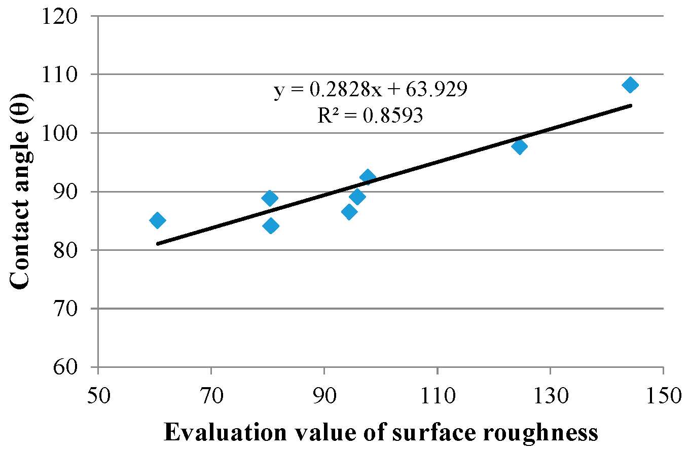 The correlation coefficient was used as an index to establish the relationship between contact angle and various surface roughness. As shown in