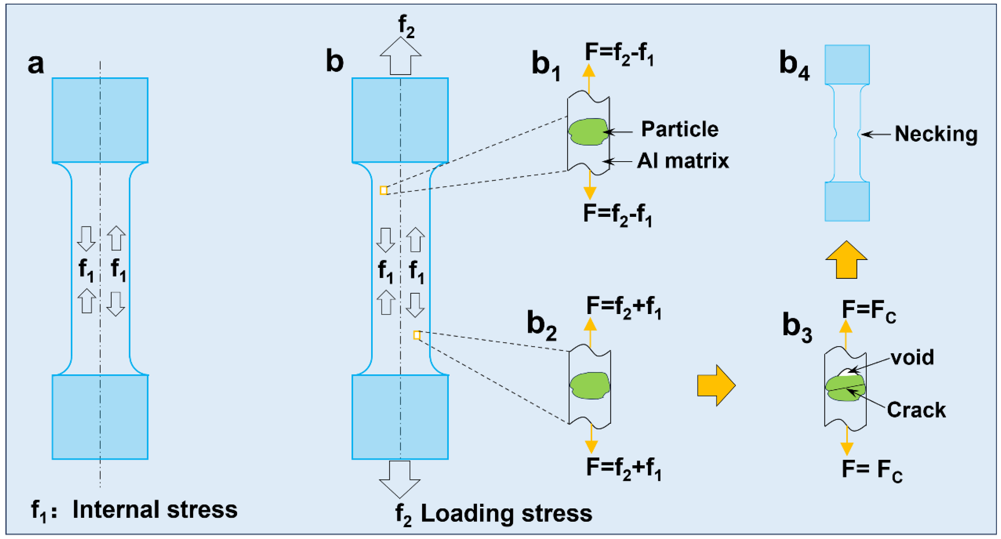 - It was proposed that mechanical property variation arose due to the relief of residual stress during natural aging. According to the built stress distribution model, reduced residual stress during natural aging delayed the formation of cracks or voids in the matrix, leading to an increase in uniform elongation and tensile stress of Al alloys.