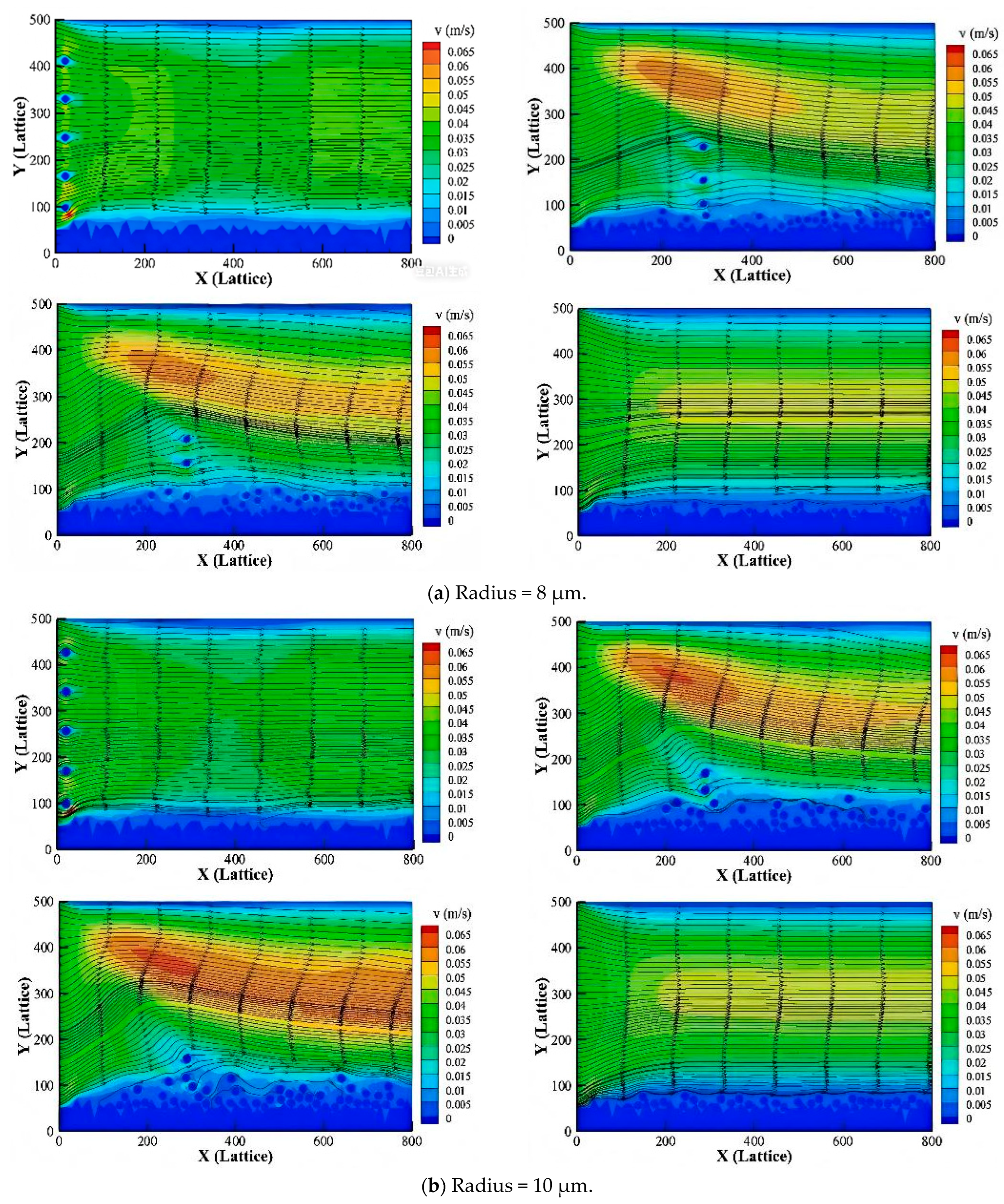 26]. Xiong et al. employed a combined lattice Boltzmann method–discrete element method–discrete particle simulation approach to investigate particle–fluid flow dynamics, showing that this novel model effectively captures the particle–fluid interaction [