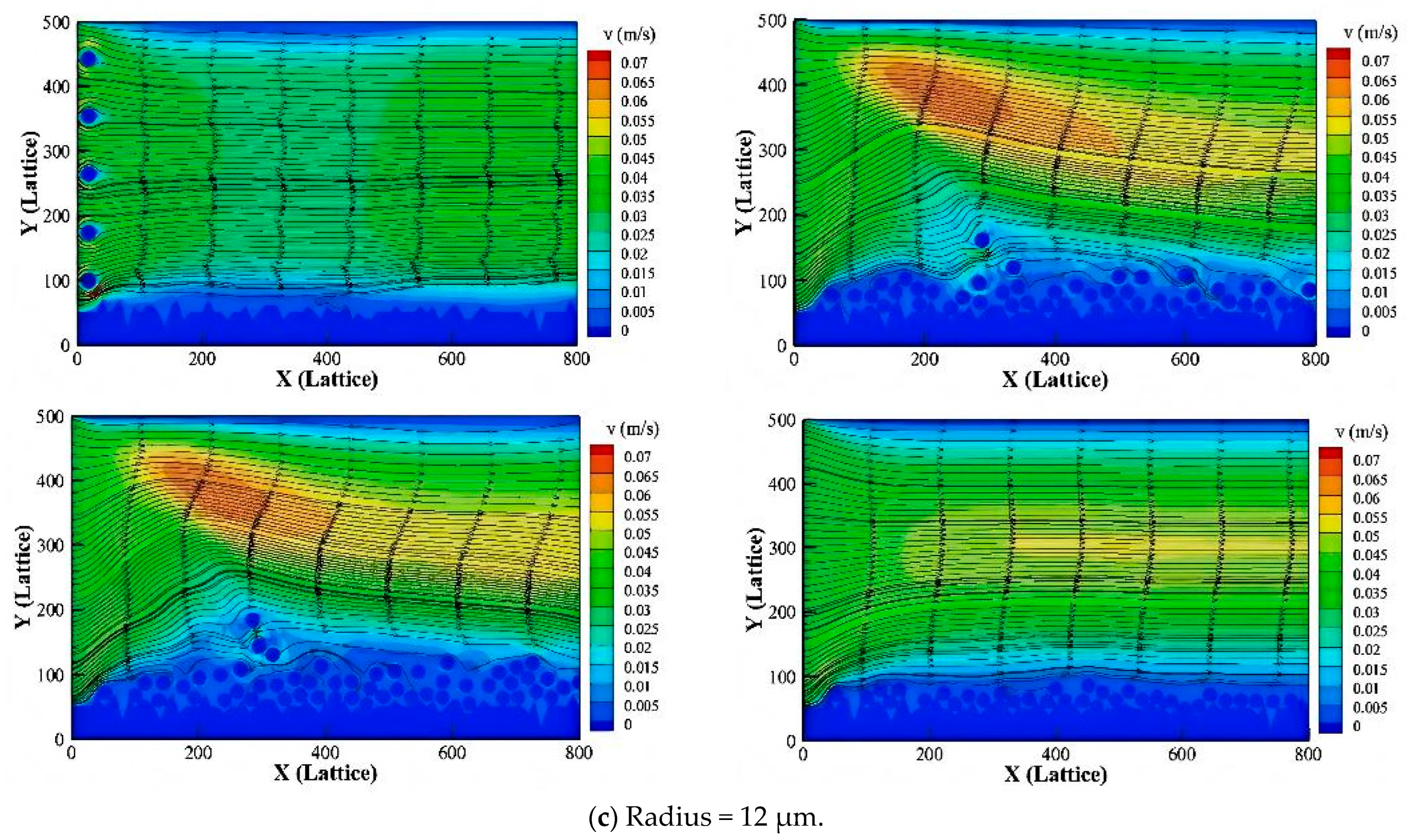 28]. These results demonstrate the lattice Boltzmann method’s efficacy for modeling particle transport and deposition across diverse surface morphologies.