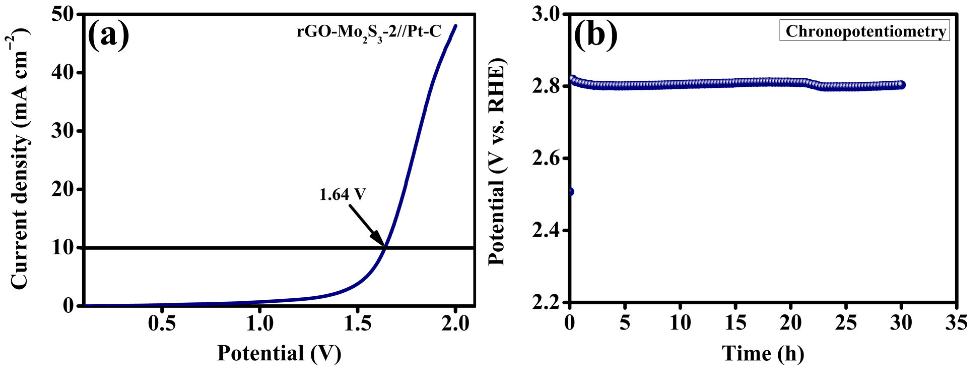 - Zhao, M.; Zhou, G.; Liu, X.; Shen, X.; Lv, J.; Hu, C.; Wang, Y.; Tan, W.; Sun, S.; Ma, Y. One step hydrothermal synthesis of Ni-MoS2-RGO bifunctional electrocatalysts for HER and OER. Int. J. Electrochem. Sci. 2021, 16, 210323. [Google Scholar] [CrossRef]