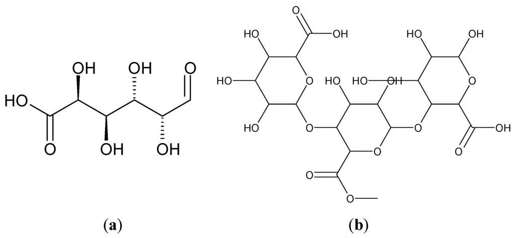 Pectins consist if (a) galacturonic acid and (b) methylesterified homogalacturonan (see the text for details) [37,38].