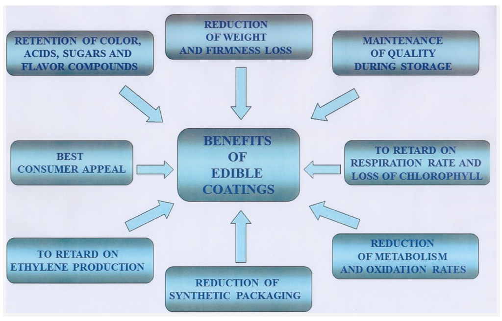 Numerous benefits result when edible coatings are applied, and these are summarized in Figure 1.