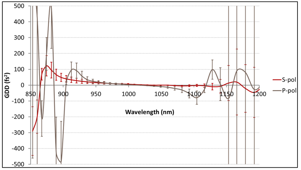 Bellum, J.C.; Field, E.S.; Winstone, T.B.; Kletecka, D.E. Low Group Delay Dispersion Optical Coating for Broad Bandwidth High Reflection at 45° Incidence, P Polarization of Femtosecond Pulses with 900 nm Center Wavelength. Coatings 2016, 6, 11. https://doi.org/10.3390/coatings6010011