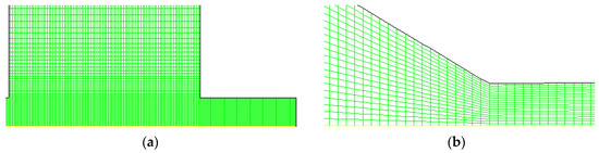 Schematic diagram of quadrilateral meshing strategy for computational domain (a) substrate near the hole, (b) cross-section of nozzle throat.