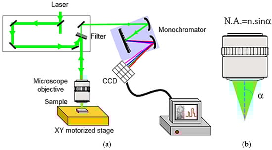 - Gouadec, G.; Colomban, P. Raman spectroscopy of nanomaterials: How spectra relate to disorder, particle size and mechanical properties. Prog. Cryst. Growth Charact. Mater. 2007, 53, 1–56. [Google Scholar] [CrossRef]