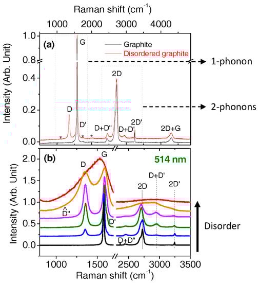2.4. Raman Spectra of Graphene, Graphite, and Disordered Carbons