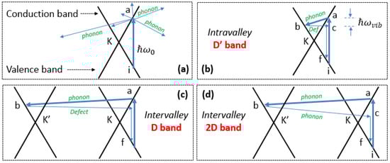 - Herziger, F.; Tyborski, C.; Ochedowski, O.; Schleberger, M.; Maultzsch, J. Double-resonant LA phonon scattering in defective graphene and carbon nanotubes. Phys. Rev. B 2014, 90, 45431. [Google Scholar] [CrossRef]