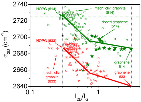 | σx (expressed in cm−1): Band position of the band labelled x (x could be G, D, 2D, D’, …). |