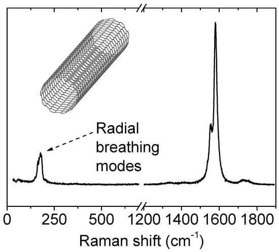 - The low frequency region (typically between 100 and 300 cm−1), which is associated to radial breathing modes (RBM), see Figure 13. The frequency of these modes is directly related to the diameter of the tubes. One can find a review on RBM not only limited to nanotubes published recently by Ghavanloo et al. [209];