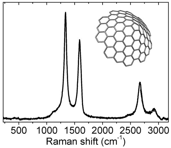 - Sato, K.; Saito, R.; Oyama, Y.; Jiang, J.; Cancado, L.G.; Pimenta, M.A.; Jorio, A.; Samsonidze, G.G.; Dresselhaus, G.; Dresselhaus, M.S. D-band Raman intensity of graphitic materials as a function of laser energy and crystallite size. Chem. Phys. Lett. 2006, 427, 117–121. [Google Scholar] [CrossRef]