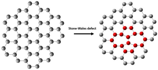 - Banhart, F.; Kotakoski, J.; Krasheninnikov, A.V. Structural defects in graphene. Acs Nano 2011, 5, 26–41. [Google Scholar] [CrossRef] [PubMed]