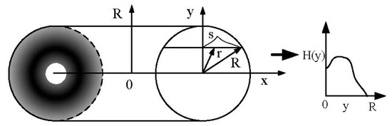 As shown in Figure 3, assuming that the integral of the static spray profile along the spraying direction is H(y), the radial thickness profile h(r) of the circular static spray model can be accumulated to form a cross-sectional thickness profile H(y) along the spraying direction, and the function H(y) is the cumulative paint thickness in the y-direction.