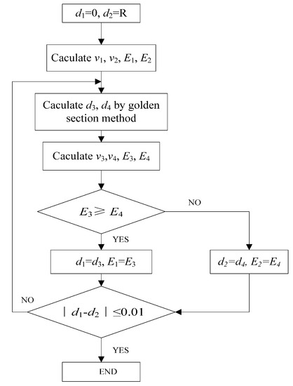 Flow chart of the optimization of the width d of the overlapping area formed by two spray-painting strokes.