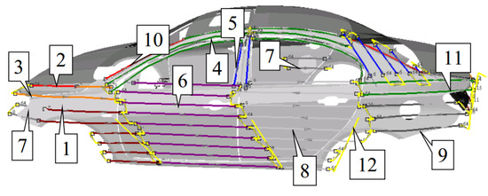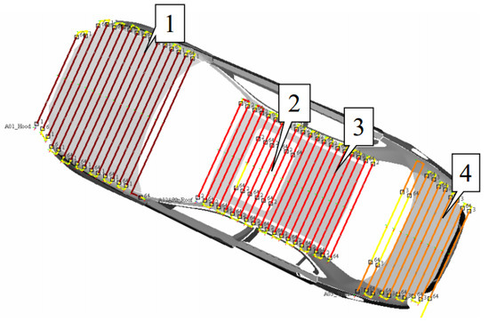 Optimized trajectory on the roof part of the automobile.