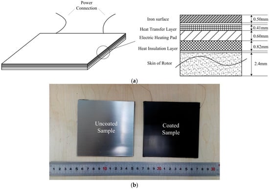 (a) Schematic of anti-/deicing component without graphene coating; (b) Photograph of uncoated sample and coated sample.