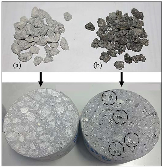Coarse aggregate: (a) Granite; (b) Palm oil clinker (POC).