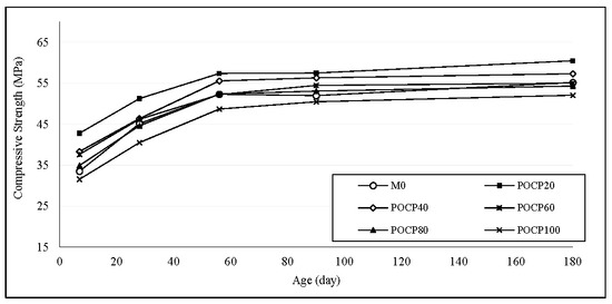 28-day compressive strength of POC and POCP concretes.