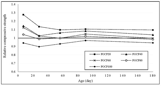 Relative compressive strength of POCP concrete.