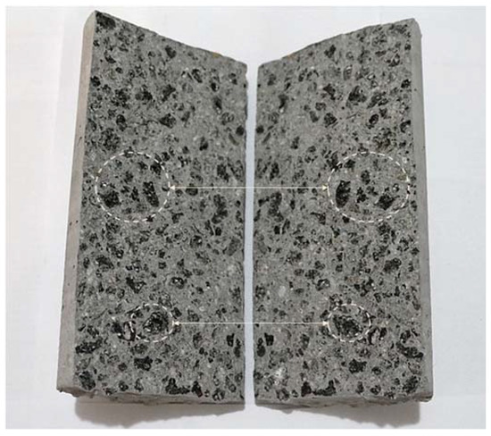 The volume of POCP required for each replacement level of POC coarse were calculated and presented in Table 4. POCP was calculated by determining the volume of the additional voids with reference to granite. Taking into consideration the substantial volume of voids and the irregular shape of POC coarse aggregate. The combination of POC and POCP with a proportion based on the PP mix design, as tabulated in Table 4, was prepared. They were thoroughly dry mixed for 4–5 min using a pan type mixer in order to fill up the voids and properly coat the POC particles, as shown in Figure 8.