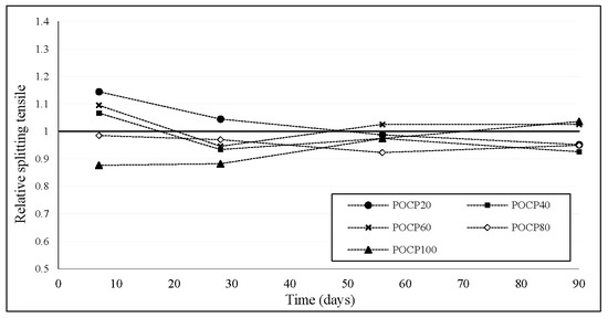 Relative splitting tensile strength of POCP concrete.