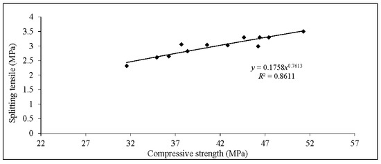 Splitting tensile and compressive strength relationship of POCP concrete.